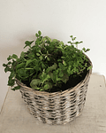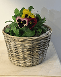 Canasto Mediano Cilíndrico de Mimbre con 3/4 Flores o Almácigos de la Temporada.